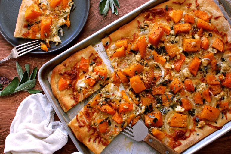This roasted butternut squash pizza recipe makes a chic, easy fall and winter pizza. With sage, blue cheese, and rosemary to enhance seasonal flavor.