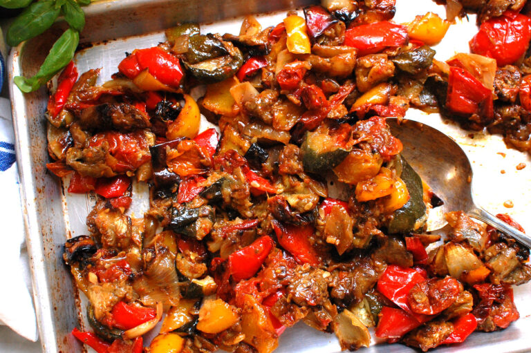 A traditional, easy French ratatouille recipe that gets baked on a sheet pan for a simple, late-summer vegetable side.